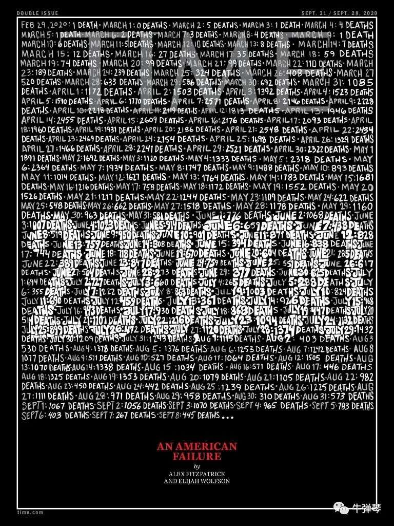 2,美國人應(yīng)該也在反思。一個世界上最強(qiáng)大的帝國,一個曾讓無數(shù)人羨慕的美國,在21世紀(jì)發(fā)生這么慘烈的死亡,世界第一,真的讓人很無語。《時代》就很痛心疾首,在所有發(fā)達(dá)國家中,也只有美國情況失控了。