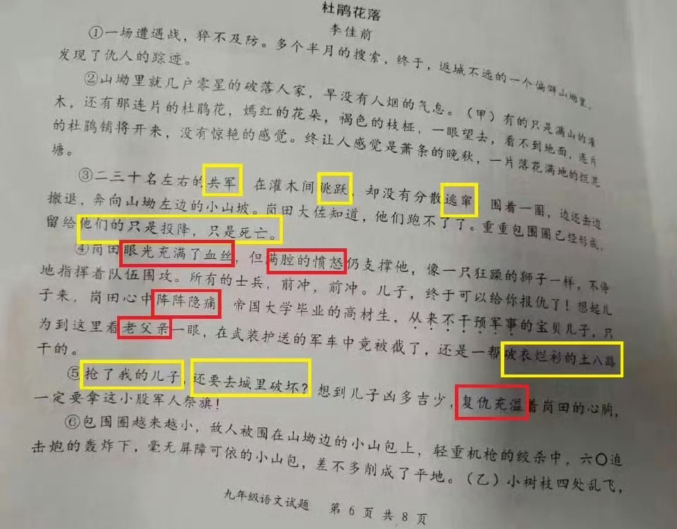 在成都新都區(qū)初三年級語文測試中,出現(xiàn)了一篇觸目驚心的文章,名叫《杜鵑花落》。看題目,不會覺得有啥。但是,結(jié)合文章內(nèi)容,這“杜鵑花”就另有所指了。