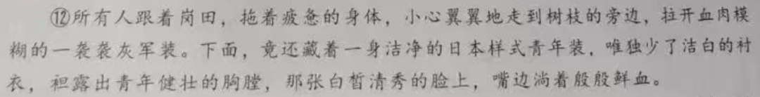 這個“杜鵑花”就點題了。我們都知道,在中文語境里,“杜鵑花”代表著一種美好的意象,代指“繁榮吉祥”。紅色杜鵑花則有著更為深刻的內(nèi)涵,它暗自“紅色革命的勝利”。可在這篇文章里,“杜鵑花”代指的是日本大佐的兒子,“杜鵑花落”,就是大佐的兒子死了。